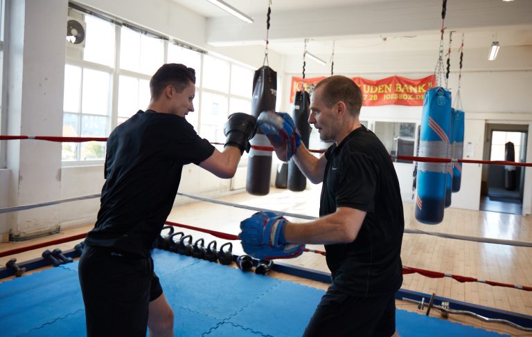 Teknikhold hos Joe’s Boxing Gym starter med 15 minutters opvarmning, typisk med løb, sjipning eller øvelser på stepbænke. Herefter skifter du mellem at have boksehandsker og plethandsker på.
